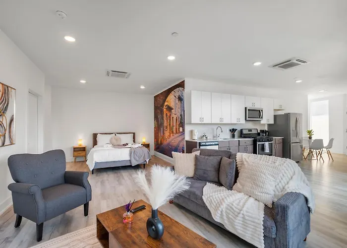 The 1-room Urban Retreat Studio Balcony Smart Design Philadelphia offers proximity to such tourist attractions as Crane Arts Building, situated nearly a 5-minute walk away.